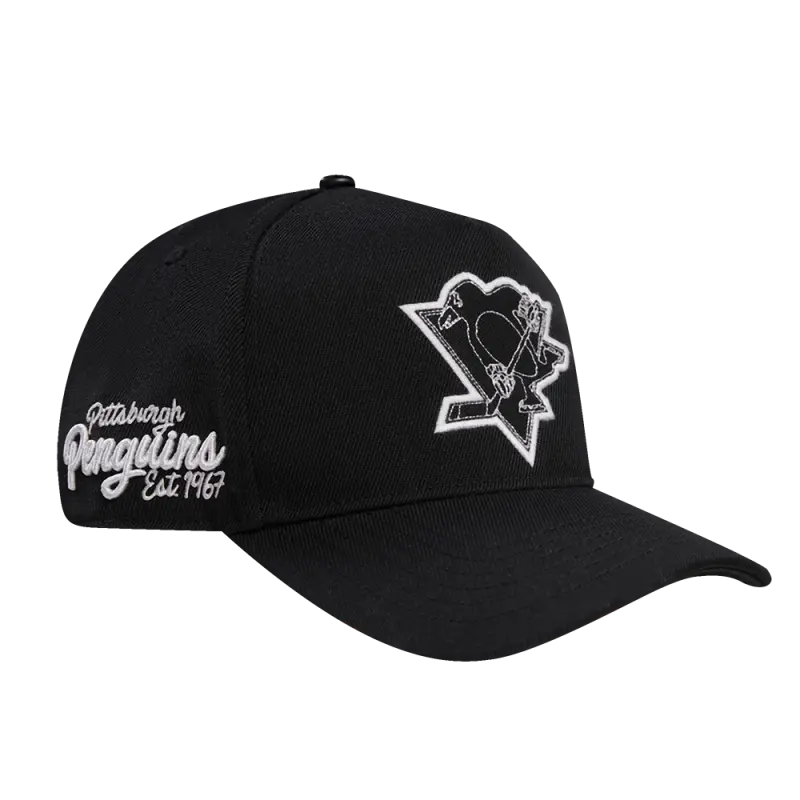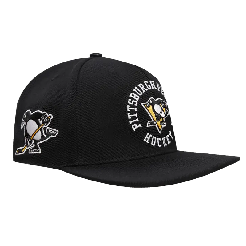 NHL PITTSBURGH PENGUINS OLD ENGLISH UNISEX 6 PANEL SNAPBACK HAT (BLACK)