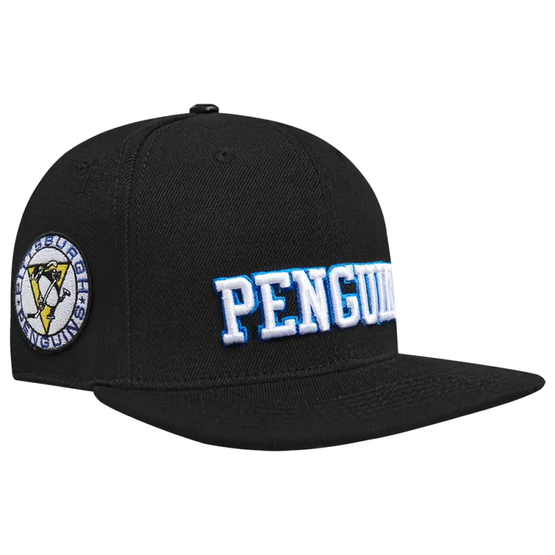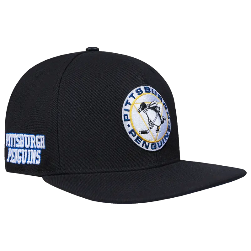 NHL PITTSBURGH PENGUINS RETRO CLASSIC UNISEX WORDMARK LOGO WOOL SNAPBAC (BLACK)