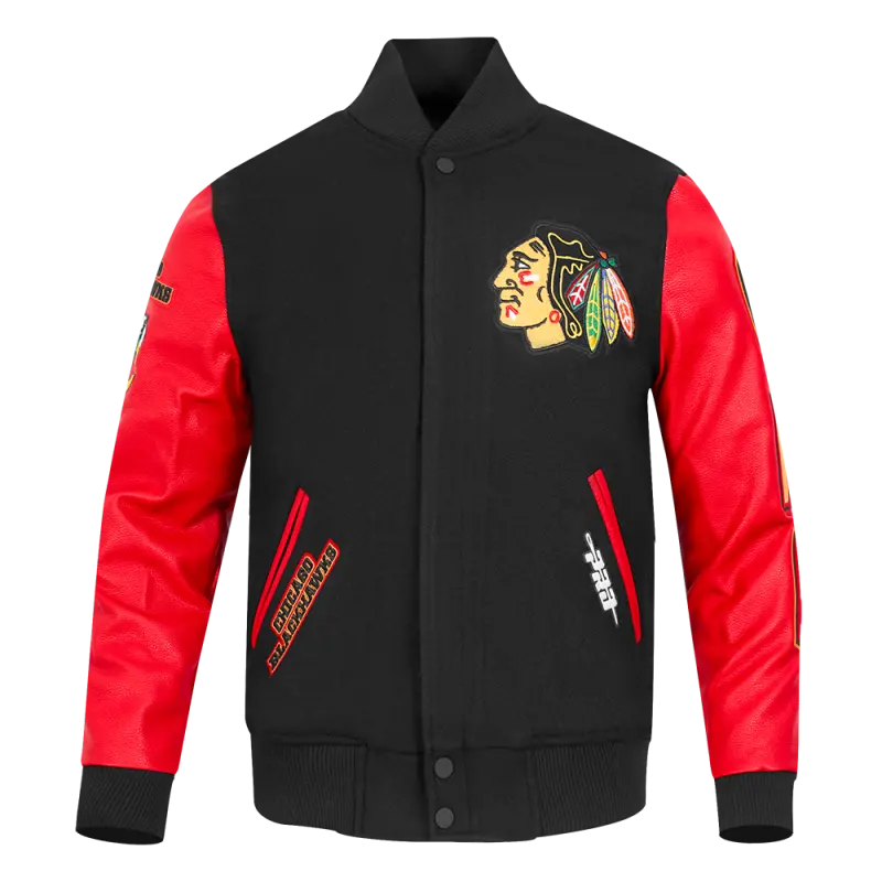 NHL CHICAGO BLACKHAWKS CLASSIC MEN’S WOOL VARSITY JACKET (BLACK\/RED)