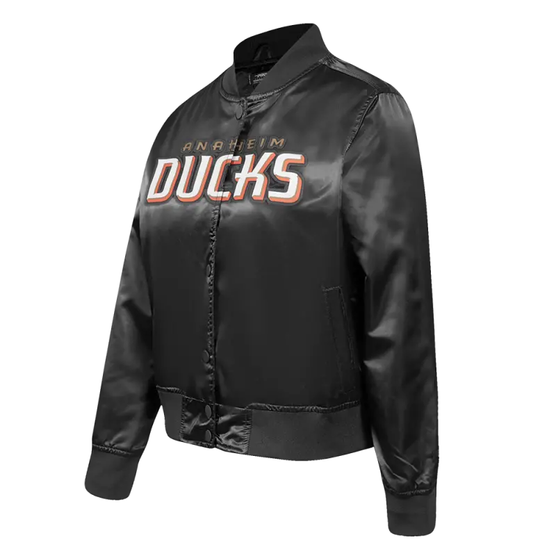 NHL ANAHEIM DUCKS CLASSIC WOMEN’S SATIN JACKET (BLACK)