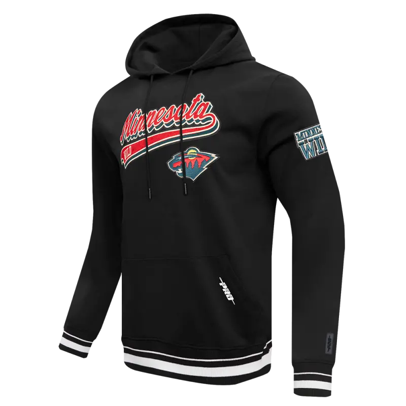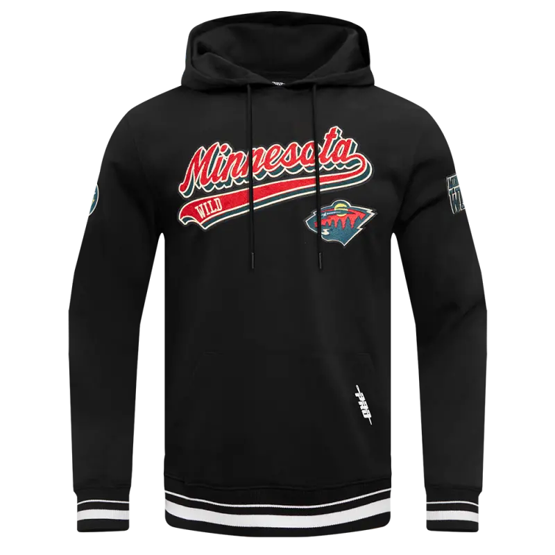 NHL MINNESOTA WILD SCRIPT TAIL MEN’S RIB FLC PO HOODIE (BLACK)