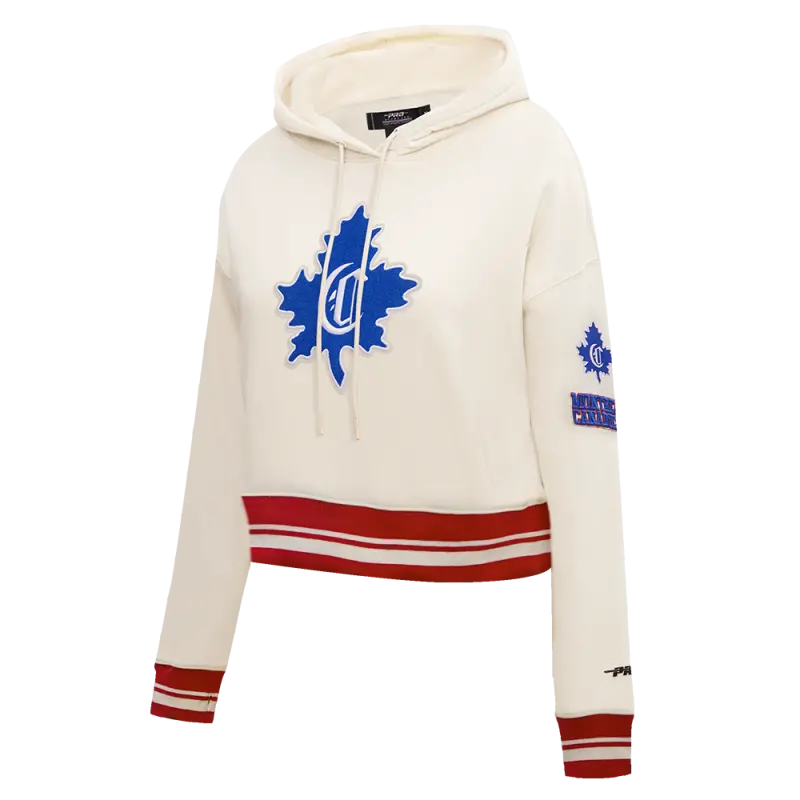 NHL MONTREAL CANADIENS CLASSIC WOMEN’S FLEECE CROPPED PULLOVER HOODIE (WHITE)