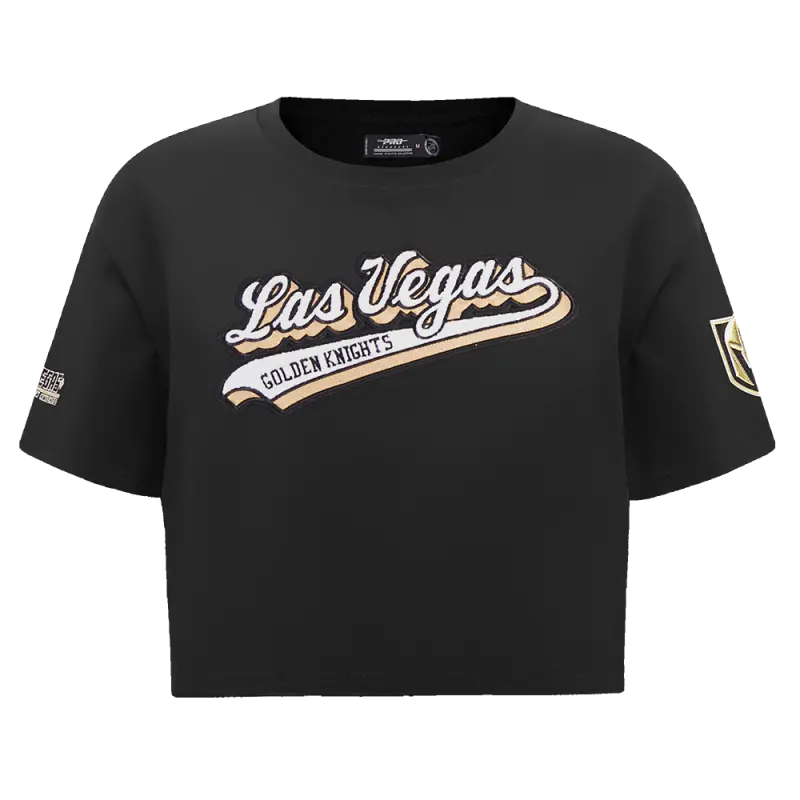 NHL VEGAS GOLDEN KNIGHTS SCRIPT TAIL WOMEN’S SINGLE JERSEY BOXY TEE (BLACK)