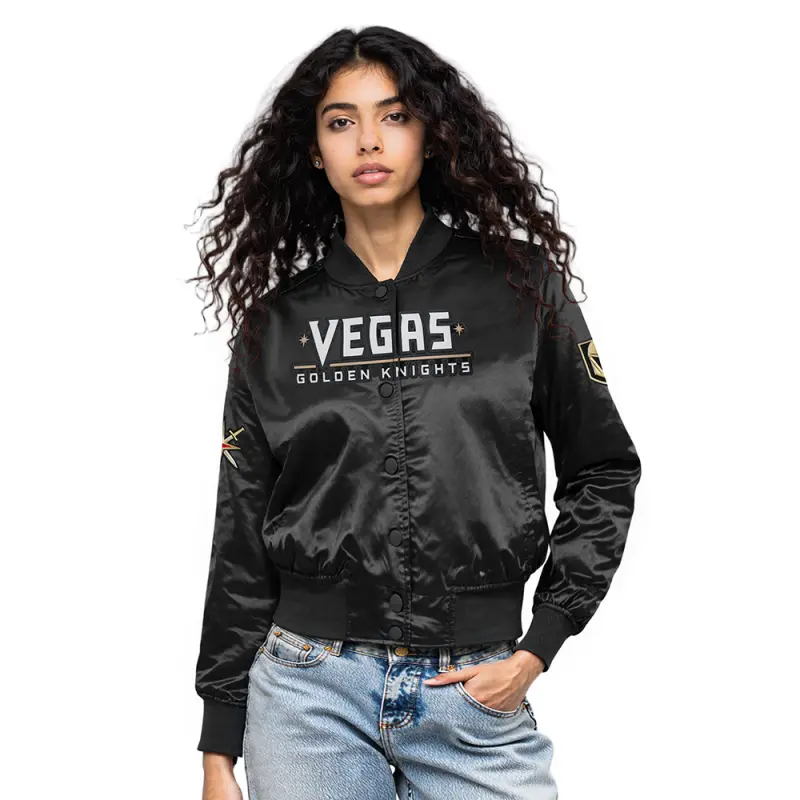 NHL VEGAS GOLDEN KNIGHTS CLASSIC WOMEN’S SATIN JACKET (BLACK)