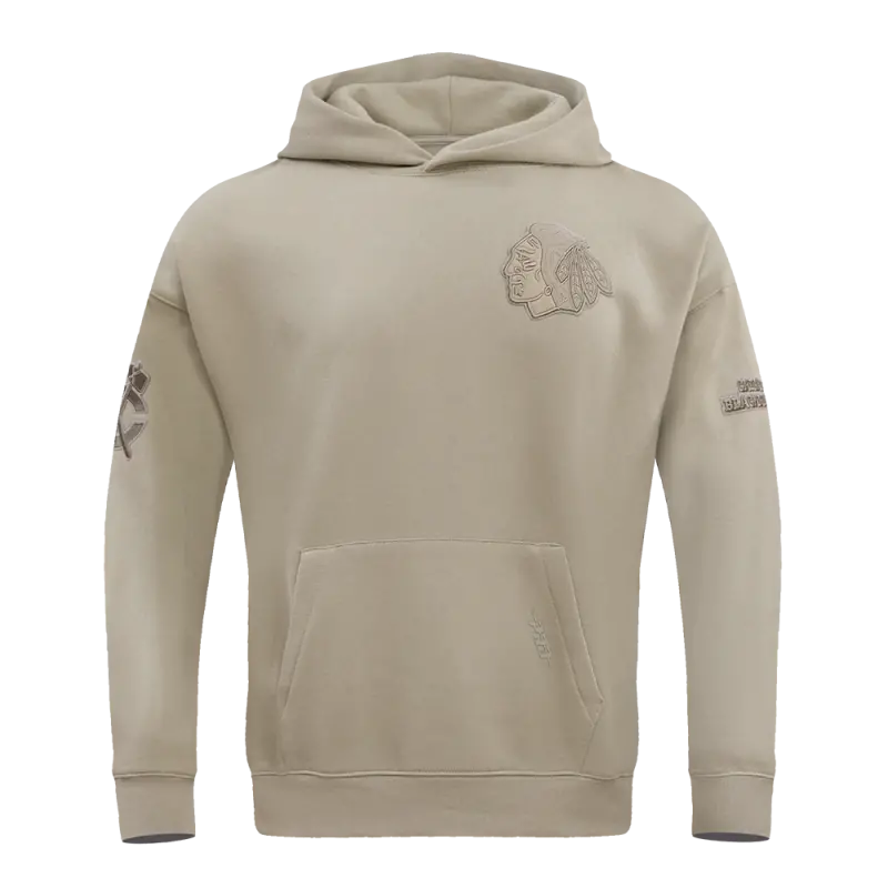 NHL CHICAGO BLACKHAWKS NEUTRAL DROP SHOULDER FLEECE PULLOVER HOODIE (TAUPE)