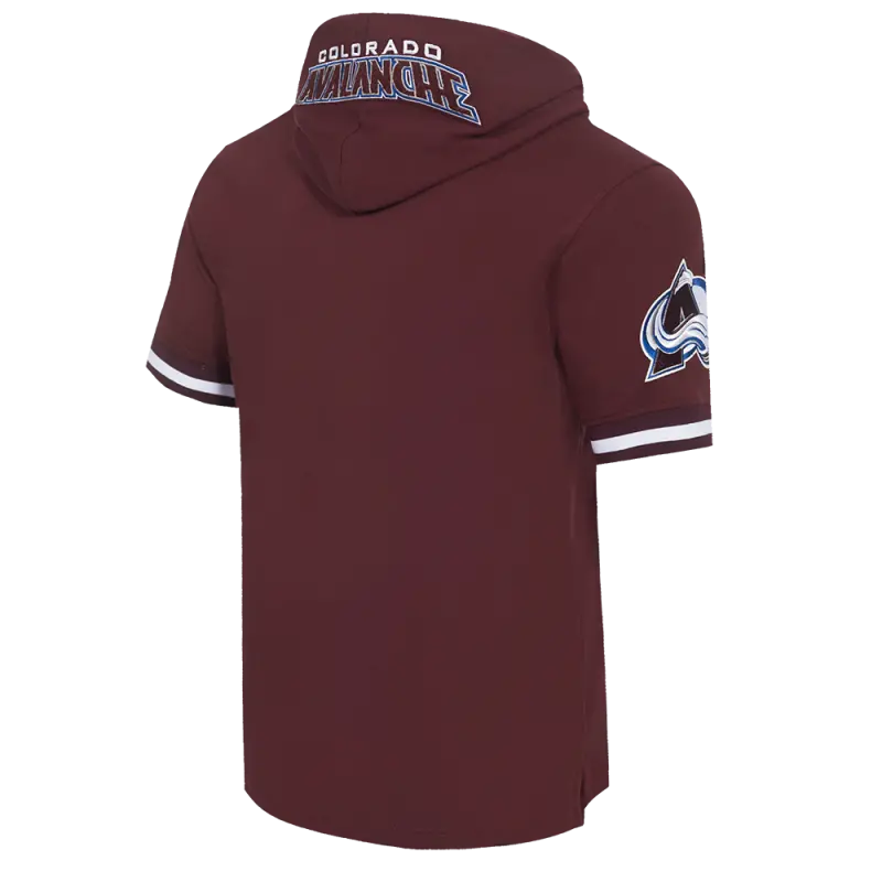 NHL COLORADO AVALANCHE CLASSIC CHENILLE MEN’S SHORT SLEEVE PULLOVER HOODIE (WINE)