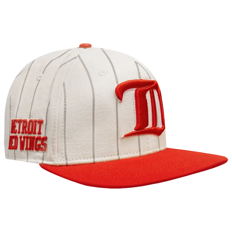 NHL DETROIT RED WINGS PINSTRIPE RETRO CLASSIC LOGO WOOL SNAPBACK (EGGSHELL\/ GREY)