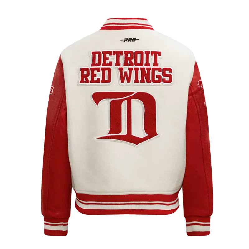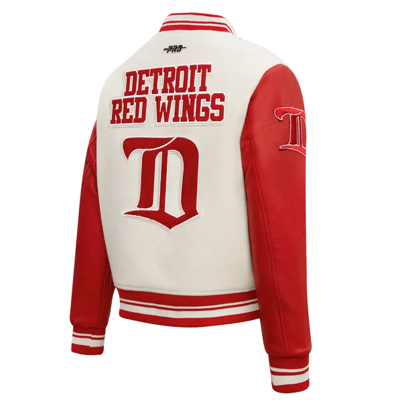 NHL DETROIT RED WINGS RETRO CLASSIC WOMEN’S RIB WOOL VARSITY JACKET (EGGSHELL\/ RED)