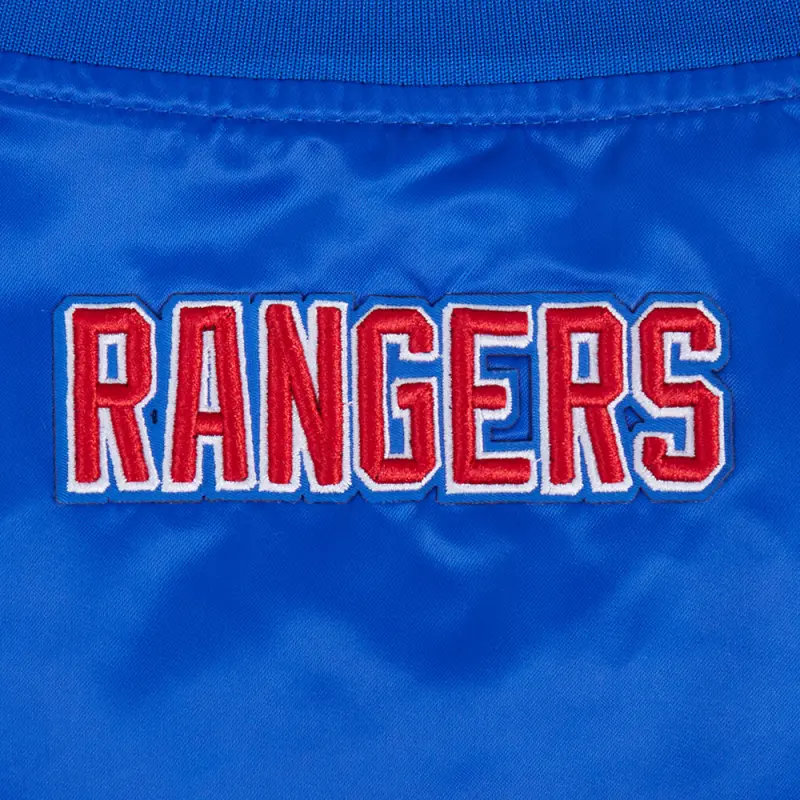 NHL NEW YORK RANGERS SCRIPT TAIL WOMEN’S SATIN JACKET (ROYAL BLUE)