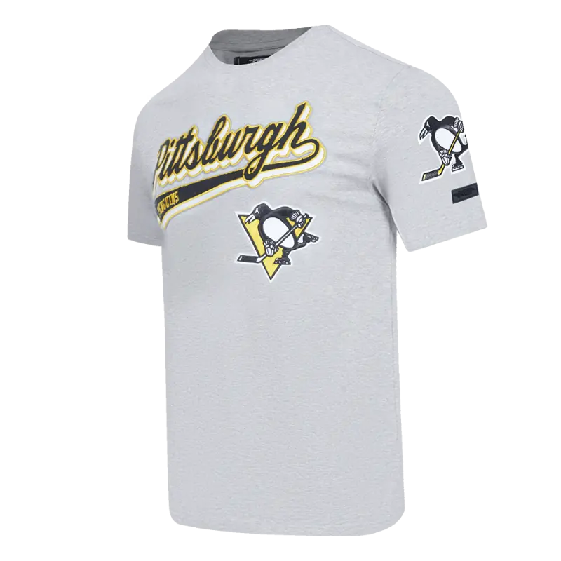 NHL PITTSBURGH PENGUINS SCRIPT TAIL MEN’S TEE (HEATHER GREY)